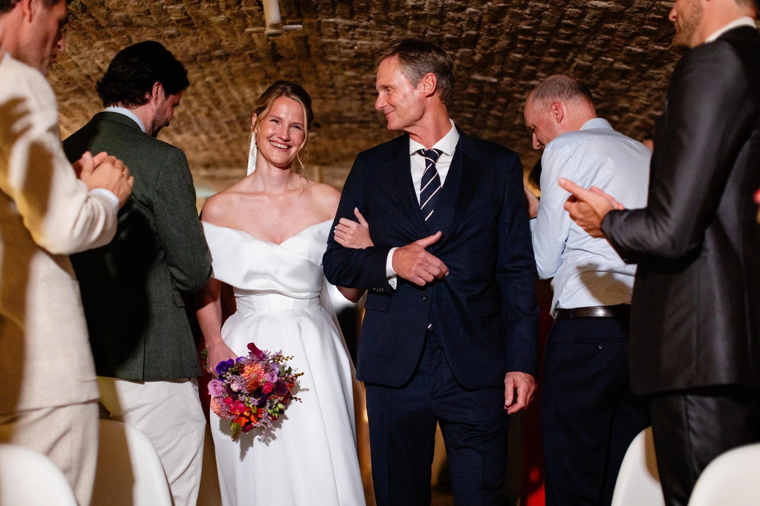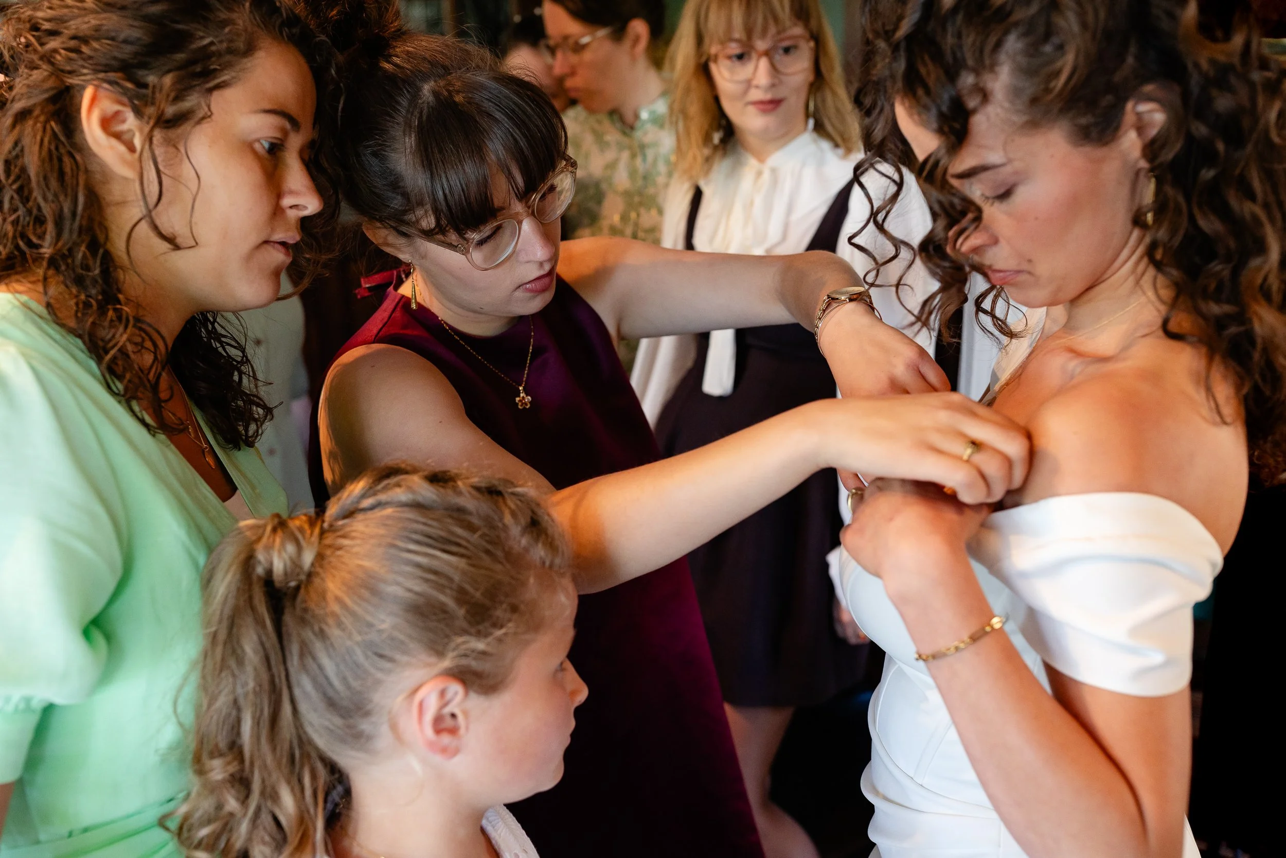 De ruimte die ontstaat bij een persoonlijke bruiloft is de perfecte omstandigheid voor documentaire fotografie. Een nieuwsgierig bruidsmeisje dat stiekem van de taart snoept, een lach die opbloeit tijdens een speech of de ontlading wanneer jullie elkaar voor het eerst zien. Het zijn deze momenten, niet te regisseren maar onmisbaar, die bepalen hoe de dag later wordt herinnerd.