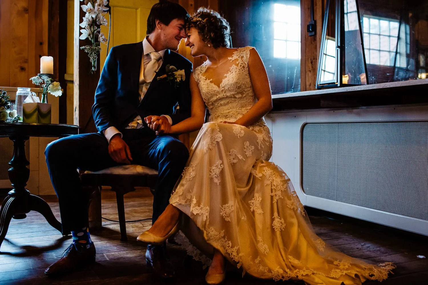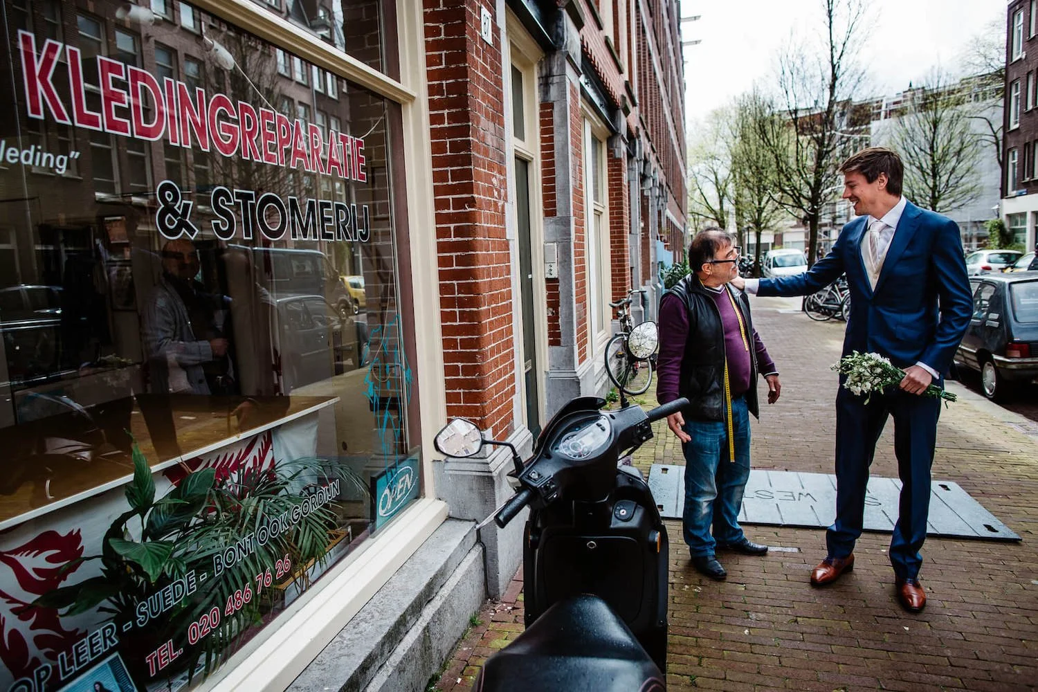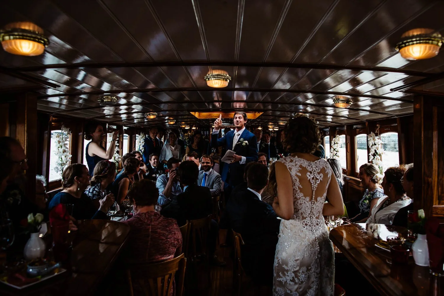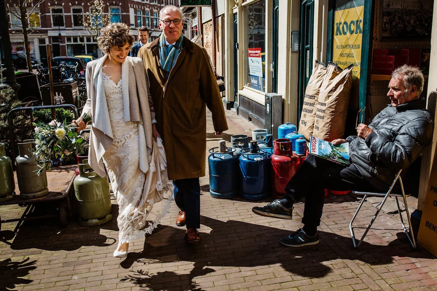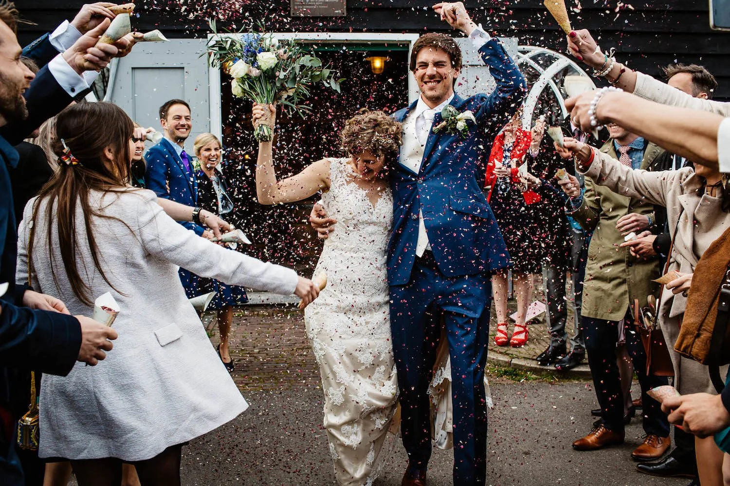 Jesse leerde hen vorig jaar kennen bij de bruiloft van Antoine en Kaye en ditmaal waren de rollen omgedraaid met Dieuwertje in het wit en Kaye als bruidsmeisje. En behalve de locatie – van een landelijke zomerbruiloft bij Heische Hoeve naar de charme van Mokum – was dat eigenlijk het enige merkbare verschil. Het grootste gedeelte van de gasten was toen ook al van de partij en de bekende gezichten zorgden opnieuw voor een waanzinnige dag.
