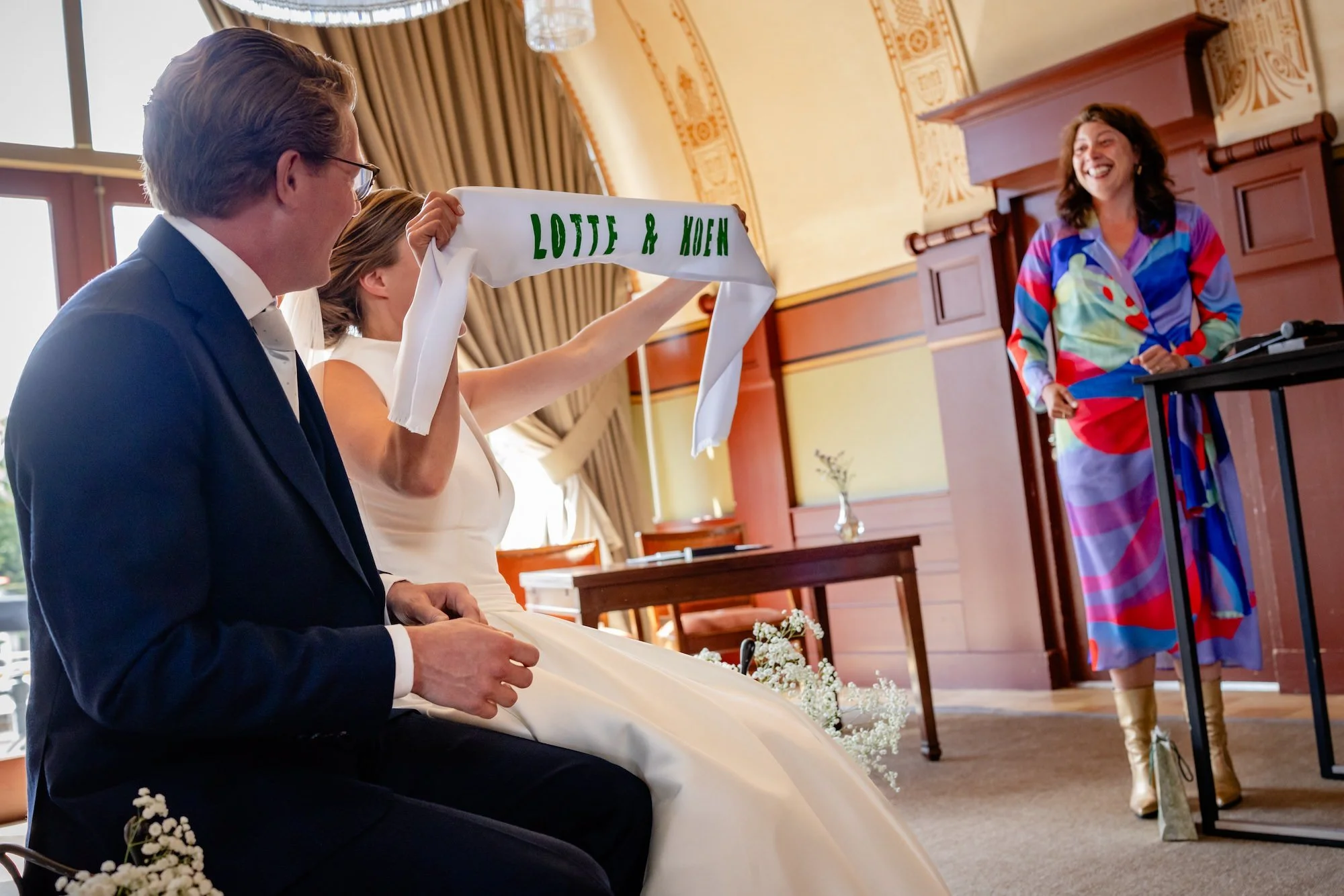 Voor de ceremonie verzamelden vrienden en familie zich bij de Maassociëteit. Het is een locatie die echt bij de stad past: karaktervol en elegant met een 'urban chic' randje. De ceremonie was prachtig en heel eigen. Lieve woorden, veel gelach en een persoonlijke touch. Het is op deze momenten dat we proberen onzichtbaar te zijn, zodat we de echte momenten tussen het bruidspaar en hun gasten kunnen vangen.