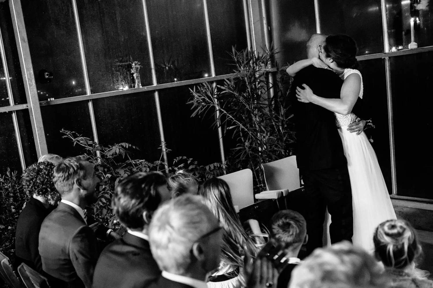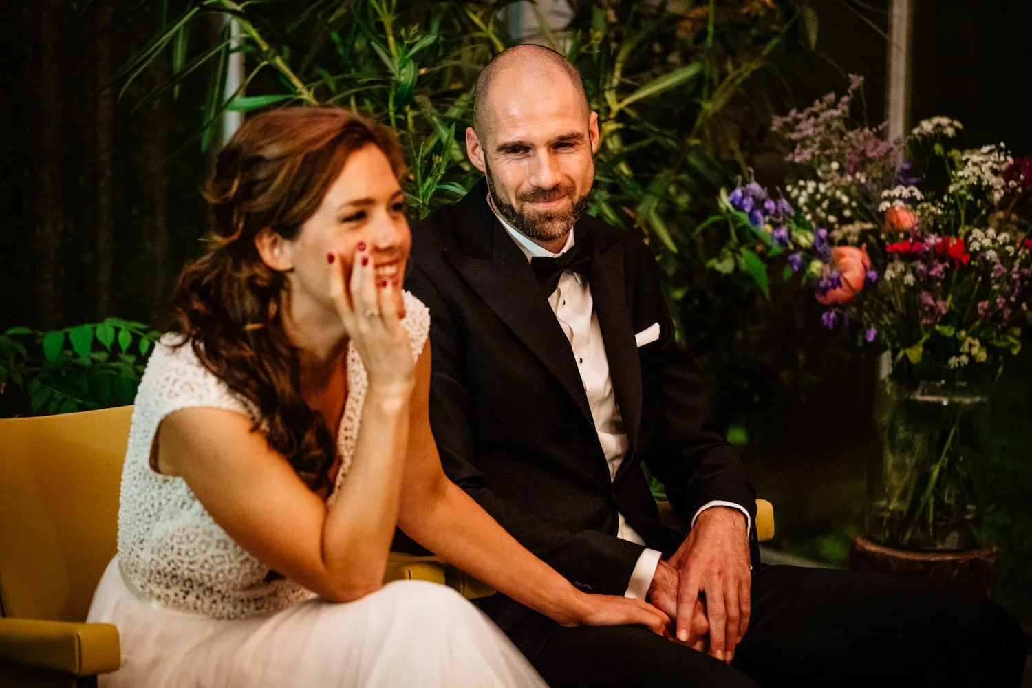 De ceremonie was ’s avonds en dat zorgde voor een verrassende en leuke indeling van de dag. Aan het eind van de middag werden alle gasten ontvangen en werd samen geborreld, daarna volgde het diner en pas daarna kleedden Ferry en Annet zich om in hun bruidskleding. Klaar voor de mooie ceremonie, die door een vriendin van het bruidspaar werd geleid. Ook was er een belangrijk aandeel voor de opa van Annet, die met zijn wijze woorden het publiek wist te vermaken.